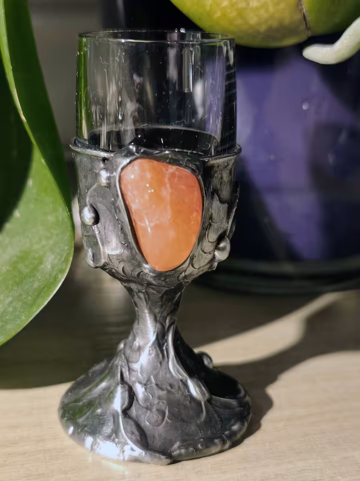 Kieliszek do nalewek (wódki) z cytrynem, pojemność 25 ml, blacha i drut miedziane, cyna.
